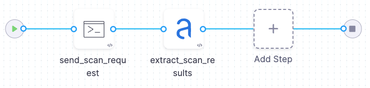 2. A scan step runs in Extraction mode. When the custom scan finishes, the step extracts the results from the scanner API and correlates, deduplicates, and ingests the results.