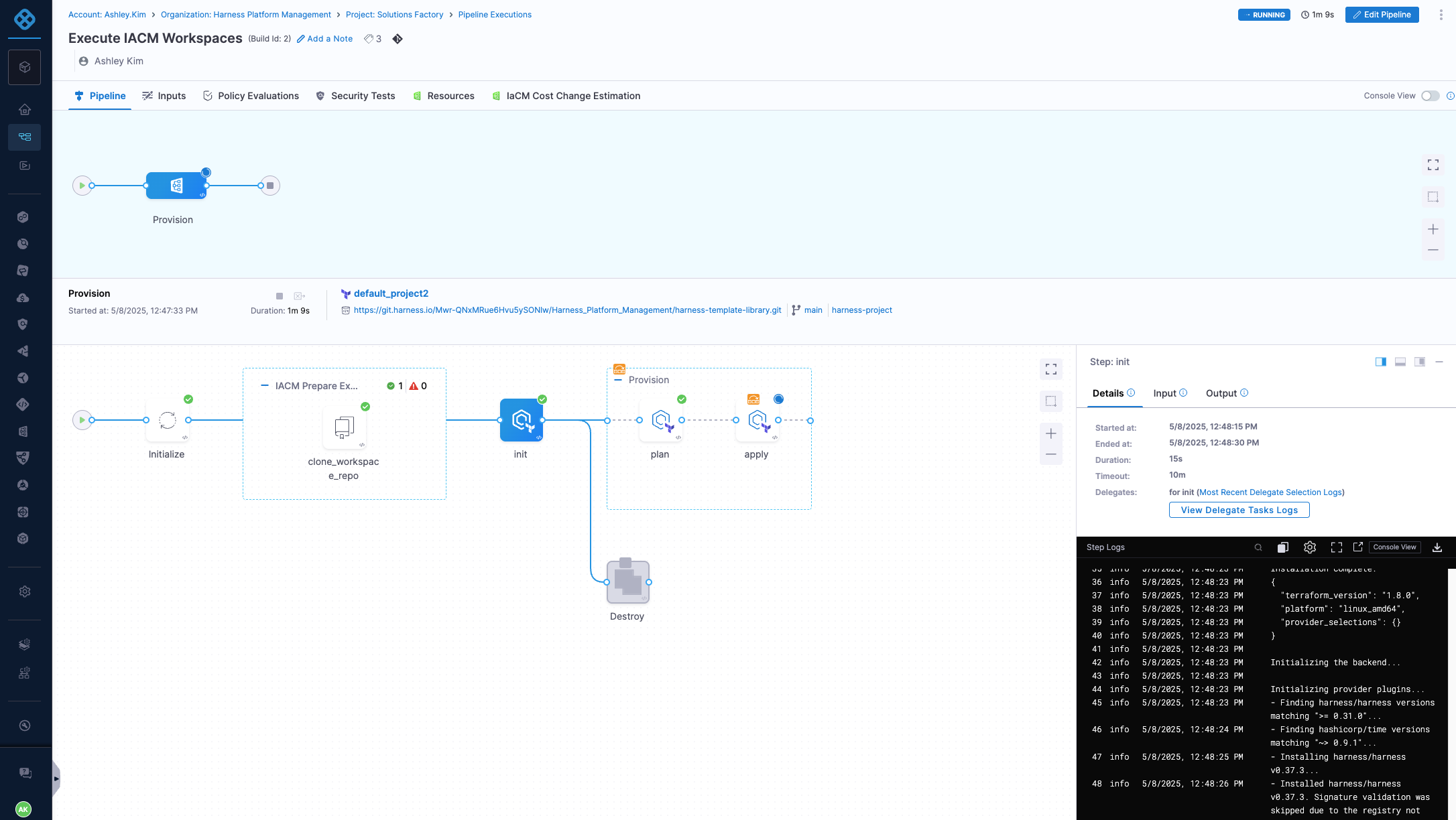 After this pipeline is done, it will kick off the Execute IACM Workspace pipeline.